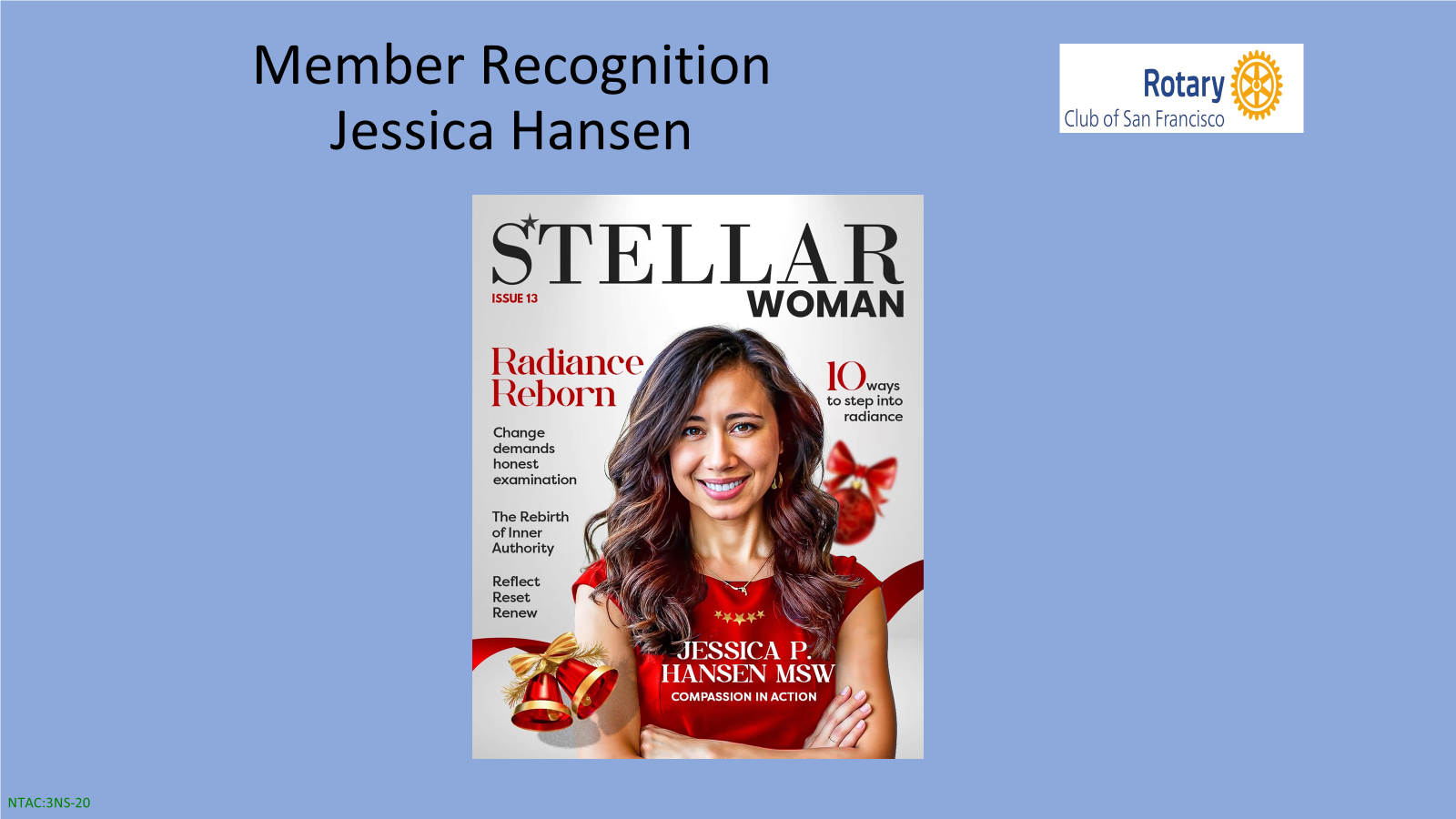 President's Message: July 2025I am honored to serve as the 117th President of our Rotary Club for the upcoming 2025-2026 year. Thank you for your faith in my abilities to serve as your President. It is with great pride that I step into this role, knowing the rich history and legacy that the Rotary Club of San Francisco has as the second oldest Rotary Club in the world. Since 1908, the Rotary Club of San Francisco has made an impact in our community and around the world. You continue to prove that Rotarians are People of Action. The legacy and power that we collectively have to make a difference in the world is evident to me every day. Thank you for your service and belief in the founding principles of Rotary: